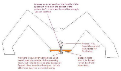 The fracture bedpan is made to slide under the patient and is much smaller then the standard size. The fracture bedpan is made to slide under the patient and is much smaller then the standard size.
