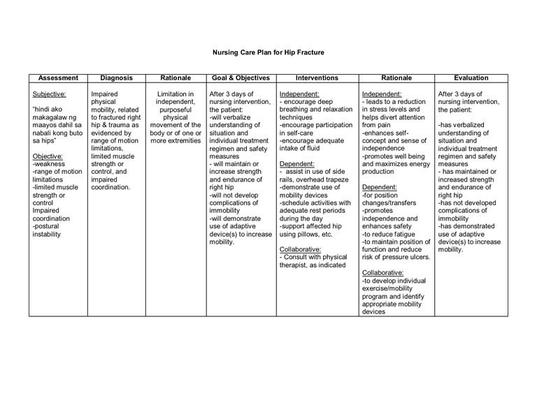 Internet marketing 2.03.2007 ncp fractures a fracture is a discontinuity or break in a bone. Provide care during client transfer.immobilize a fractured extremity with splint in the position of the deformity before moving the client; A hip fracture, as known as a femoral fracture, occurs on the proximal end of the femur. .nursing care plan client name: Nursing care planning of a patient with a fracture, whether in a cast or in traction, is based upon prevention of complications during healing. Provide care during client transfer. By daisy jane antipuesto rn mn · june 18, 2009. How to develop a nursing care plan for your hospital. Internet marketing 2.03.2007 ncp fractures a fracture is a discontinuity or break in a bone. Fractures of the skull include the cranium, face, and base of the skull. Keep the fractured arm at heart level. Nursing care plan to the client with fractures of the extremities and extremities surgery. Nursing care plan for acute painfull description. Fractured hip as evidenced by (aeb ): Nursing interventions nursing care plan for dislocated or fractured. • participates in development of health care plan. The number one cause of hip fractures is related to osteoporosis which causes weak bones.