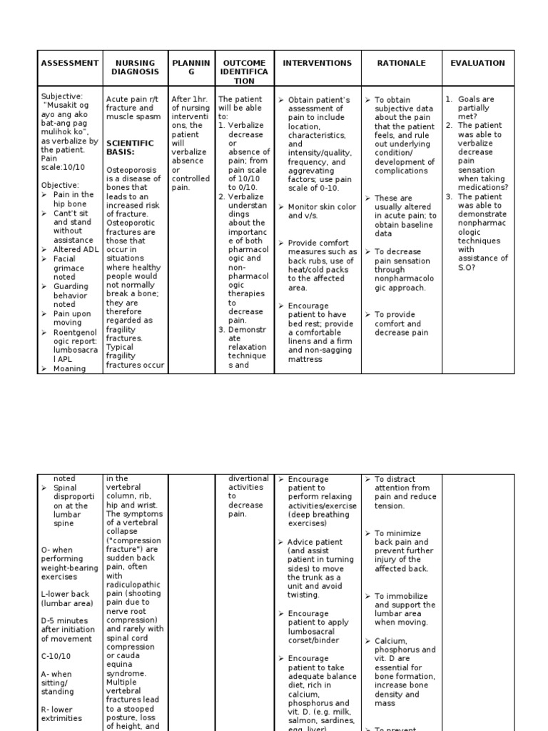 ยท disruption or break in continuity of the structure of a bone. Exhibit no signs or symptoms of infection. Nursing interventions, which are reflected in the care plan, are a list of the the methods by which nursing interventions are performed, in fact, like the entire planning stage, depend on the model that.